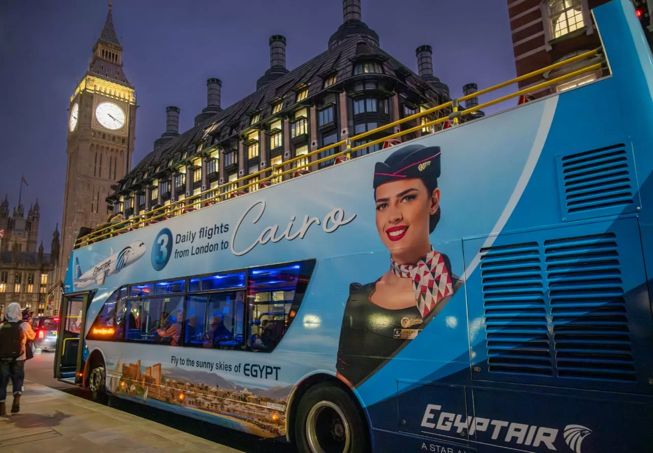 Egypt Air has launched a marketing campaign in the capital of the United Kingdom, London, for the announcement of Egyptian national carrier flights, by 3 daily flights to Cairo International Airport as part of the support and activation of the movement Tourism for and from Egypt and to serve the largest number of travelers at the highest levels of enjoyment to a unique travel experience on Egypt Air flights.