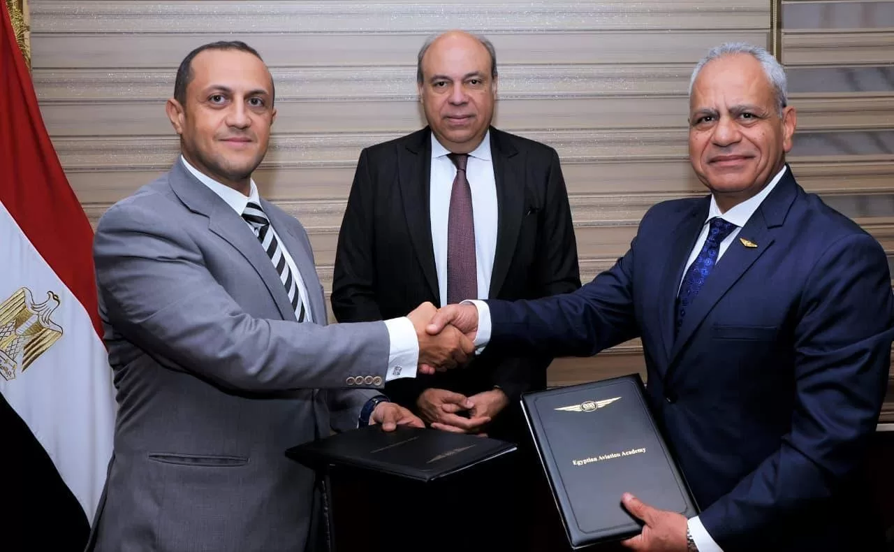 The protocol was officially signed by Eng. Ayman Fawzy Arab, Chairman and Executive Managing Director of the Egyptian Holding Company for Airports and Air Navigation, and Pilot Ezzat Metwally, Chairman of the Board of Directors of the Egyptian Academy of Aviation Sciences, with Sameh el-Hefny, Minister of Civil Aviation, witnessing the ceremony.
