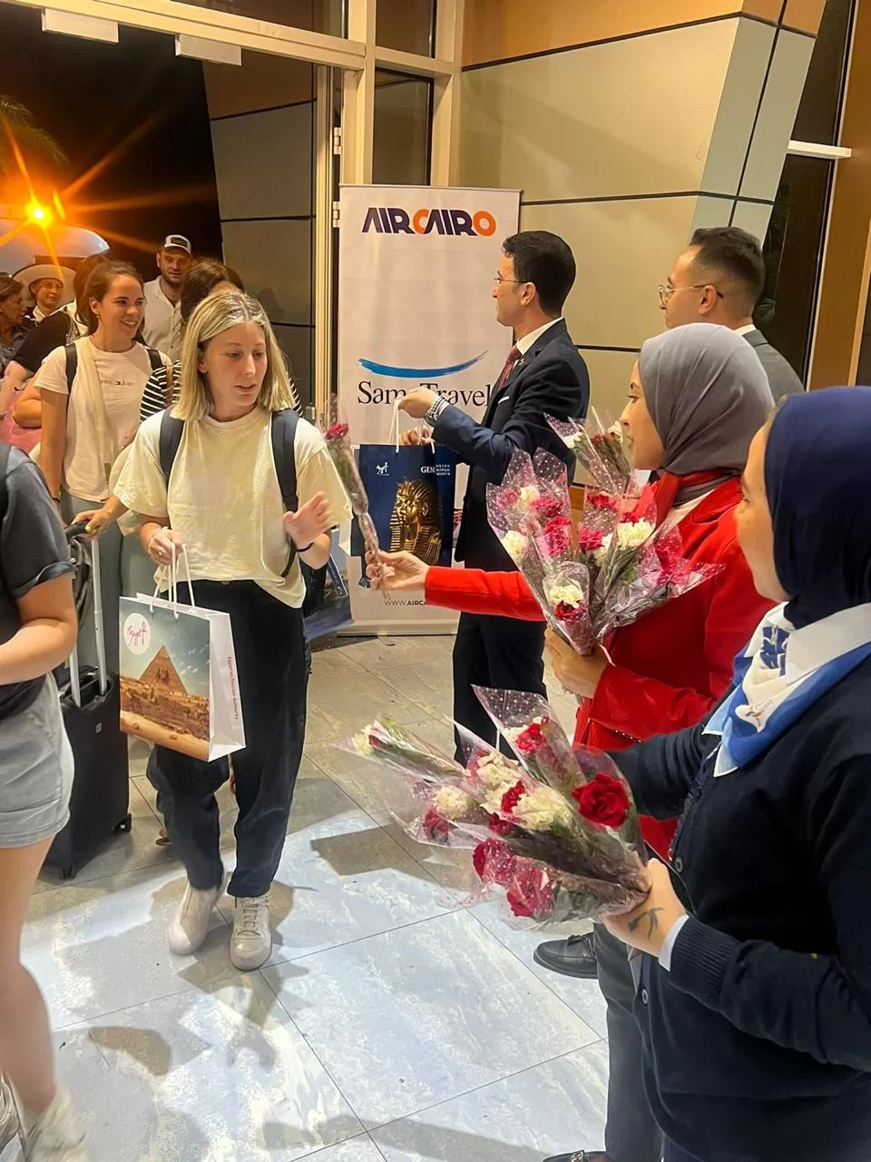 Among those welcoming the flight were Major General Ramah Hashem, Head of Sharm El Sheikh City; Major General Nabil Al-Mallah, Director of Sharm El Sheikh International Airport; and Dr. Islam Nabil, Supervisor of the Egyptian Tourism Promotion Board Office in South Sinai. The airport’s public relations team also greeted the tourists with flowers, souvenirs, and promotional materials highlighting the diverse attractions of South Sinai’s tourist destinations.