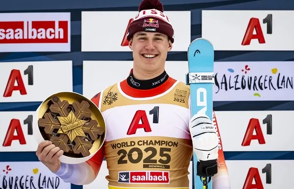 SAALBACH, Austria – Switzerland’s Franjo von Allmen claimed men’s downhill gold at the Alpine World Ski Championships in Saalbach, with compatriot Alexis Monney clinching bronze and defending champion Marco Odermatt finishing fifth.