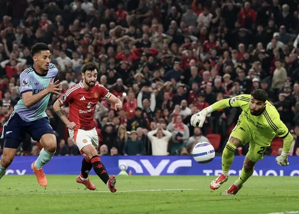 Fernandes finally broke the deadlock seconds before halftime and against the run of play with a brilliant free kick that sailed over the wall and past the outstretched hands of goalkeeper David Raya. It was the first time United had led at halftime of a Premier League game since December 1.