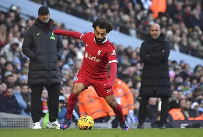 Liverpool's Mohamed Salah in action during the English Premier League against Manchester City in Manchester.