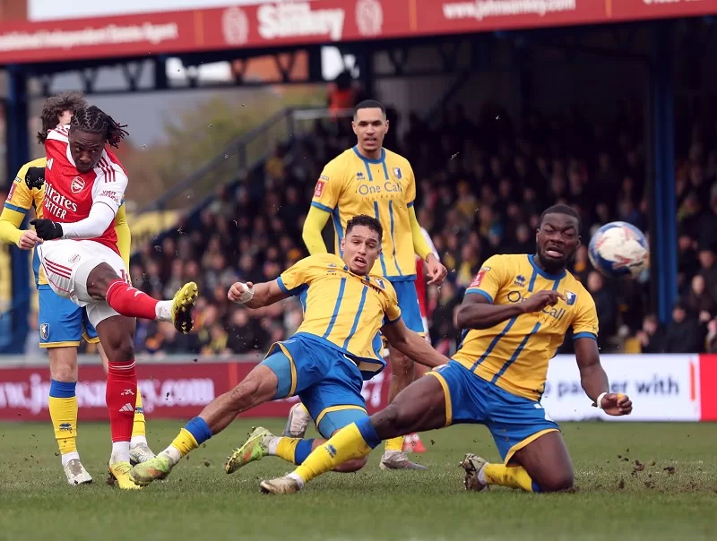 LONDON – Arsenal survived a scare to beat third-tier Mansfield 2-1 on Saturday and reach the FA Cup quarter-finals, staying on track for a historic quadruple.