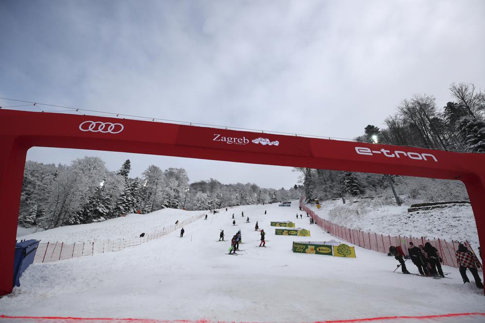 A view of the finish area of an alpine ski, men's World Cup slalom, after it was again cancelled due to the snow conditions in Zagreb, Croatia, Thursday, Jan. 6, 2022.