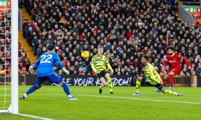 Liverpool forward Mohammed Salah scored a brilliant equaliser in the 29th minute when Trent Alexander-Arnold found him with a pinpoint long pass. Salah stepped easily around Oleksandr Zinchenko before unleashing a fierce left-foot shot into the net.