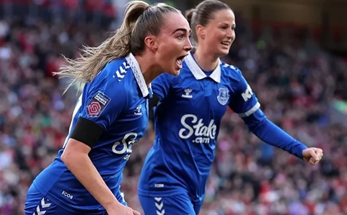 LONDON — Liverpool’s fine start to the Women’s Super League (WSL) season came to a shuddering halt as Everton grabbed a 1-0 win in the Merseyside derby at Anfield, while Manchester City thrashed Bristol City 5-0 to lead the table.
