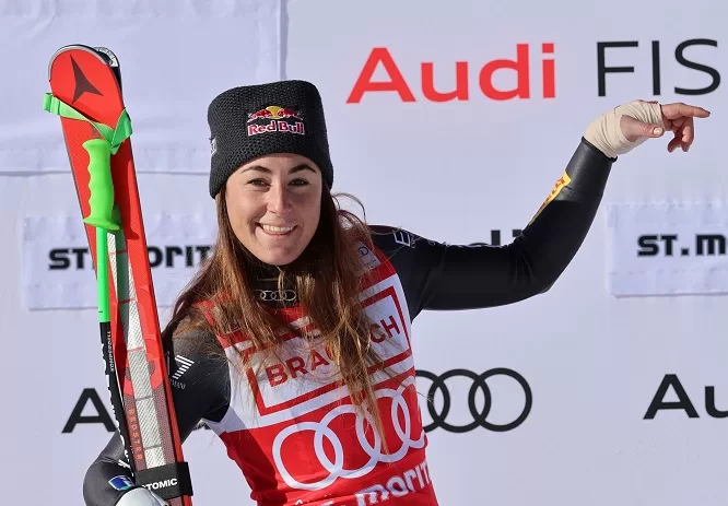 The first seven speed races for men and women were all canceled, but Goggia – a downhill specialist – showed top form immediately by dominating in the more technically demanding super-G to build a huge gap of 0.95 seconds ahead of Cornelia Huetter. Olympic super-G champion Lara Gut-Behrami of Switzerland was 1.02 back in third.
