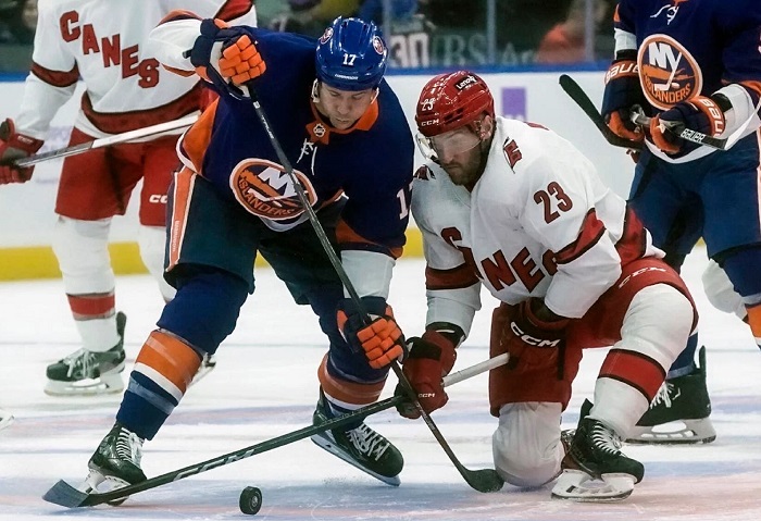 NEW YORK — Sebastian Aho scored 1:14 into overtime as the Carolina Hurricanes rallied from three goals down to beat the New York Islanders 4-3.