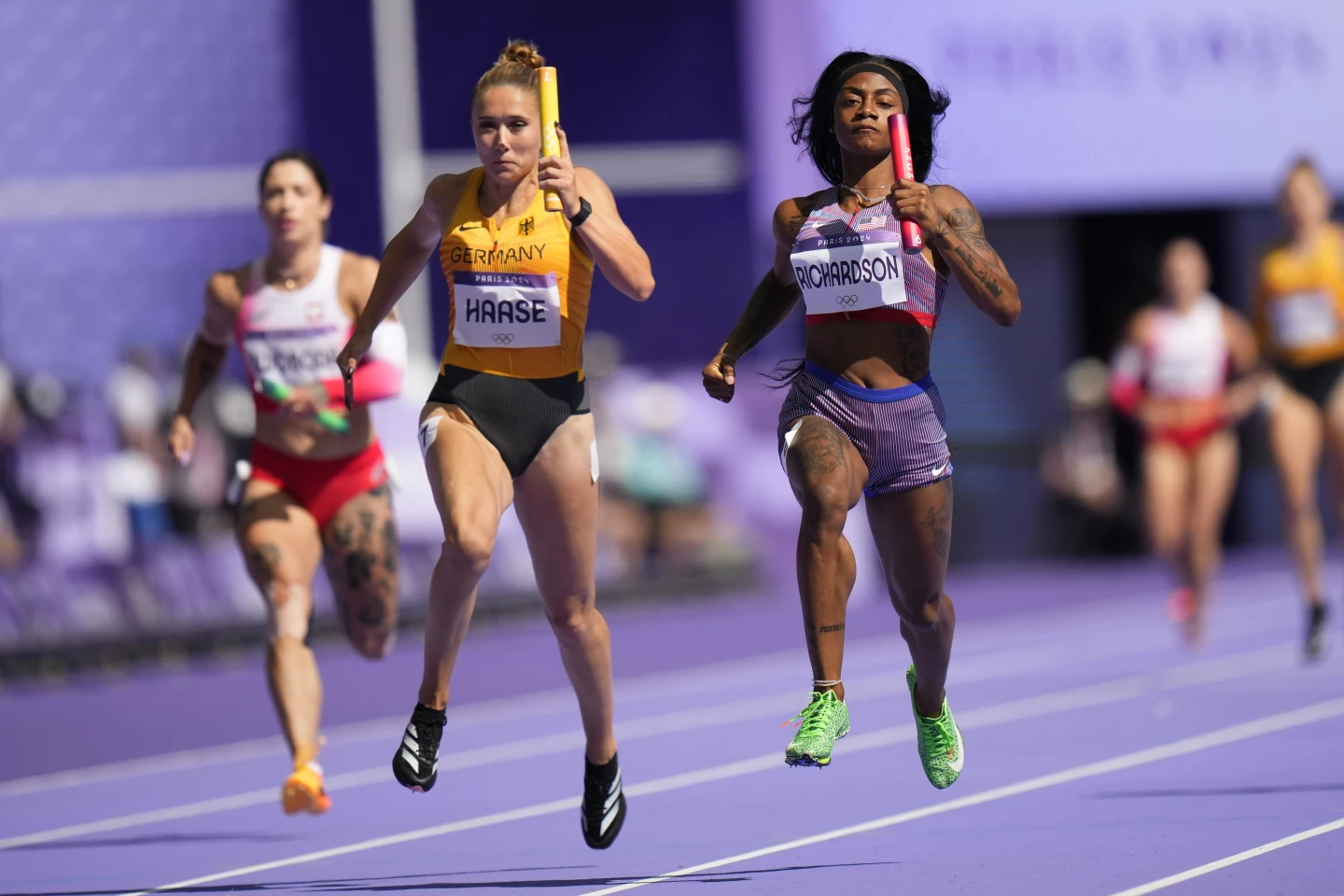 That put Richardson in a hole against Rebekka Haase, but the 100-meter silver medal winner was looking back at Haase by the finish. The U.S. won in 41.94 seconds, .19 ahead of the Germans.