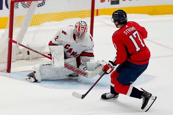Sonny Milano, also, recorded his first hat trick in the NHL and Alex Ovechkin scored again and the Washington Capitals ended the Carolina Hurricanes’ winning streak at five with a 7-6 shootout victory that could play a pivotal role in their playoff pursuit.