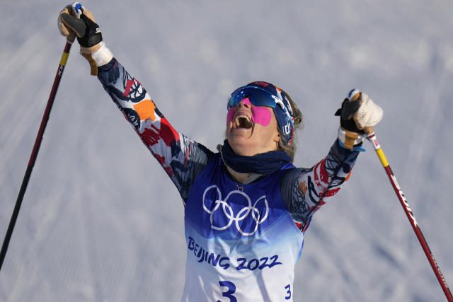 ZHANGJIAKOU, China – Therese Johaug won the first gold medal of the Beijing Olympics on Saturday, finishing first in the women´s 15-kilometer cross-country skiathlon.