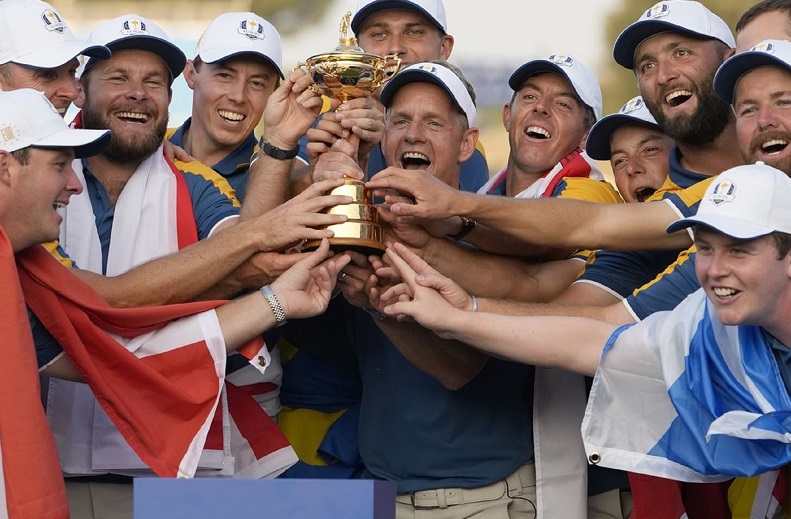 Jon Rahm, Viktor Hovland and Tyrrell Hatton also picked up key points early in the singles lineup, leaving Europe needing only a half-point to reaching the winning total. Tommy Fleetwood delivered the clincher, hitting a signature shot on the signature hole at Marco Simone – a drive to 25 feet on the reachable 16th against Rickie Fowler.