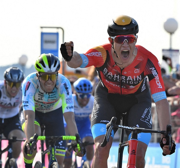 The Bahrain Victorious rider edged out David Dekker and Kaden Groves in a bunch sprint at the end of the 202-kilometre (126-mile) route from Teramo to San Salvo.