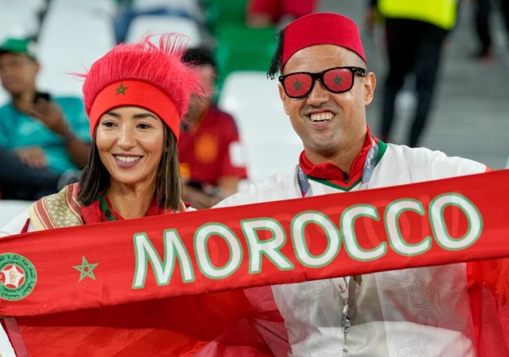 Morocco’s soccer team supporters smile prior to round of 16 match between Morocco and Spain on Dec. 6, 2022.