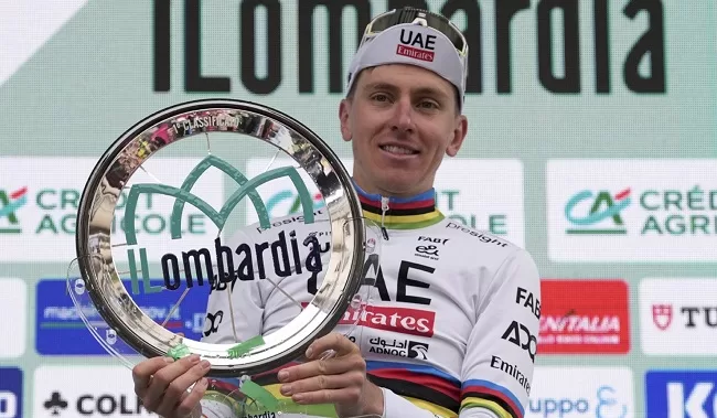 COMO, Italy — World champion Tadej Pogacar rounded off his remarkable season by winning Tour of Lombardy for the fourth year in a row, after a solo attack left his rivals chasing in vain yet again.