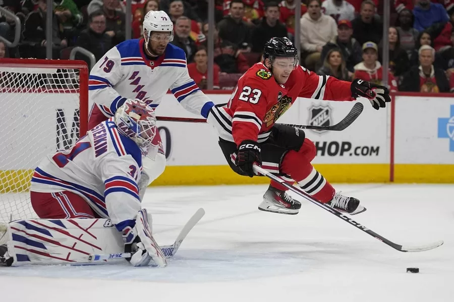 Chicago opened the scoring when Vlasic beat a screened Shesterkin from beyond the left circle 2:39 into the first. But Lafreniere responded for New York at 4:49, knocking home a slick setup by K’Andre Miller.
