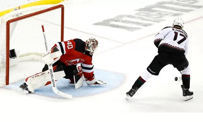 Bjugstad and Schmaltz scored on Arizona’s two attempts in the shootout, and Vejmelka stopped New Jersey’s Timo Meier and Bratt to secure the win.
