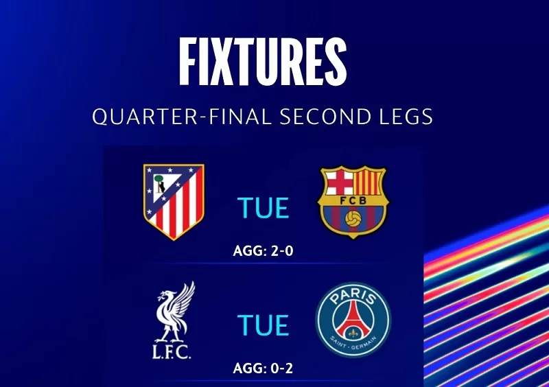 The Catalan giants fell 2-0 last week in the quarterfinal first leg at home but are aiming to reach the final four for a second consecutive year by fighting back on Tuesday at the Metropolitano stadium, AFP reported.