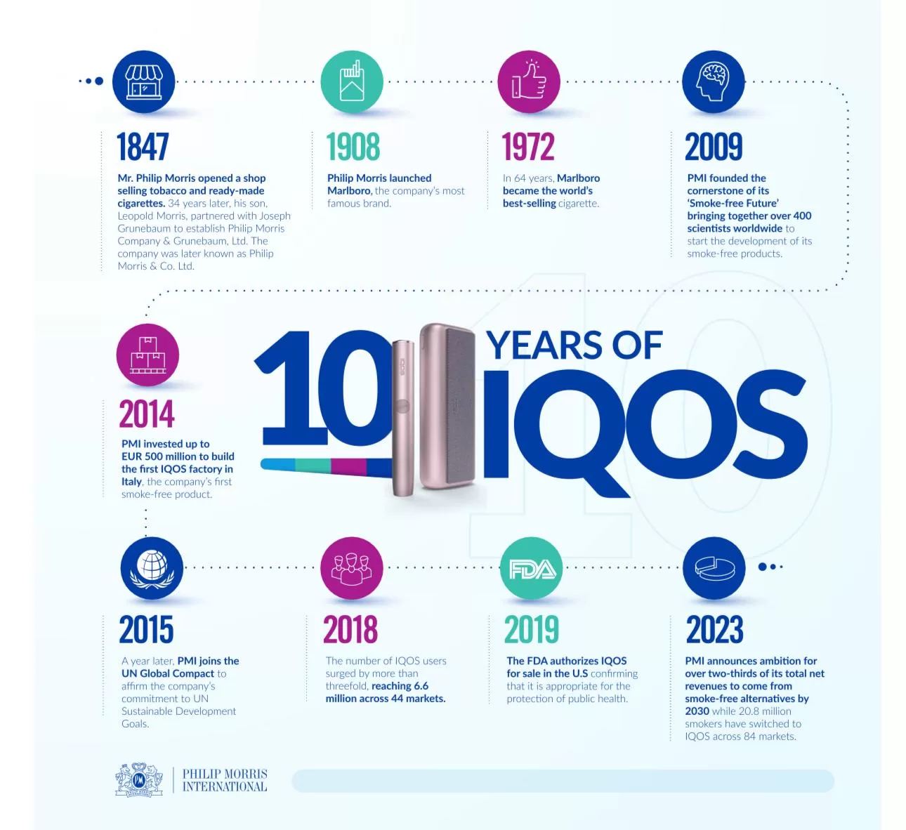 As of 2024, IQOS is available in 90 markets globally, with an estimated 36.5 million adult users, demonstrating its significant impact on shifting consumer preferences towards less harmful alternatives. Looking ahead, the success of IQOS over the past decade serves as a springboard for further innovation and progress in tobacco harm reduction.