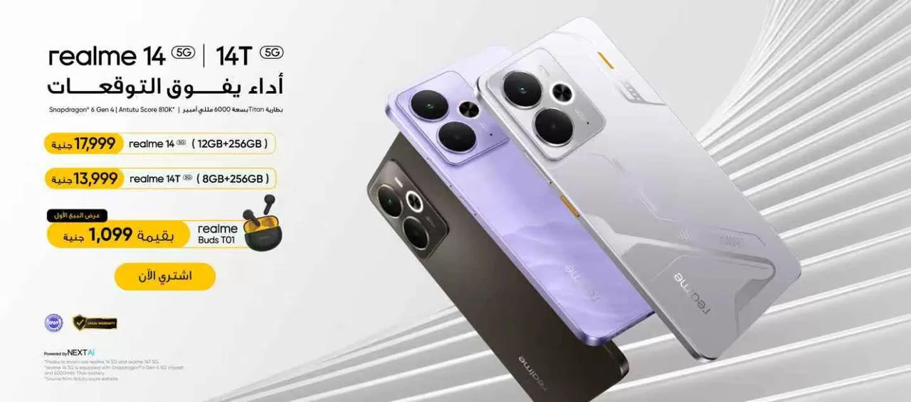 realme, the fastest-growing smartphone brand in the world, has announced the availability of its new devices realme 14 5G and realme 14T in the Egyptian market at competitive prices, just days after their global launch. Both devices feature powerful performance thanks to advanced processors and a sleek, modern design, setting a new benchmark in the mid-range smartphone segment.