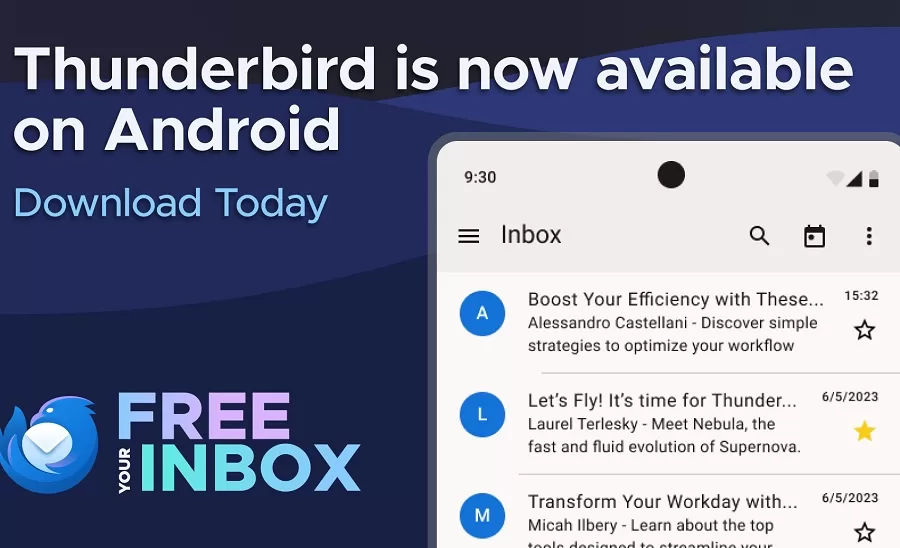 The Thunderbird app, which is ad-free, can be downloaded via Google’s Play Store or directly from the Thunderbird website.