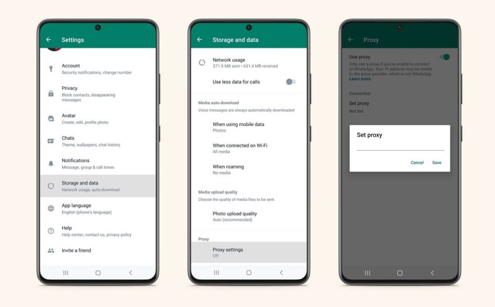 A new feature within WhatsApp’s settings will allow users to enter the name of a proxy server and use it to connect to the internet.