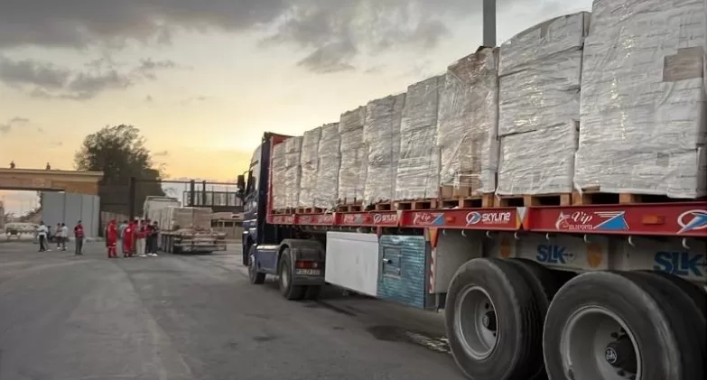 The source said the convoy is carrying large quantities of essential aid needed by the population in Gaza, including food supplies, flour, medical and humanitarian materials, and other necessities to alleviate the suffering of the people.