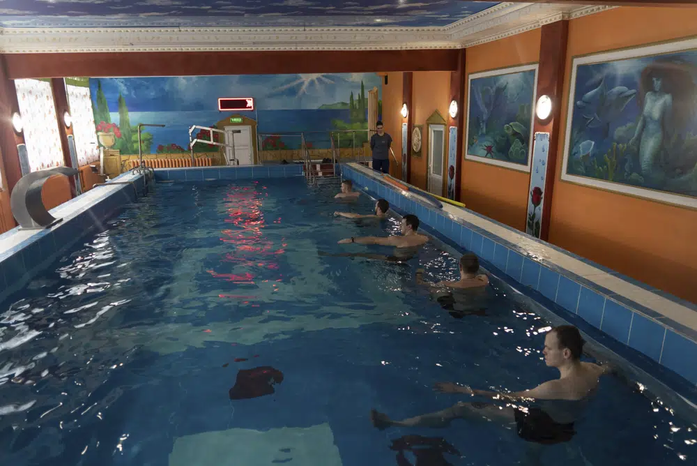 Here, soldiers are offered a variety of treatments: aquatic therapy in a hot pool to heal muscle aches; red light therapy to improve heart and blood circulation, a salt room for better breathing; and for those having nightmares, electrosleep therapy — a Soviet-era low-frequency electrotherapy that is said to relax the nervous system and induce sleep.