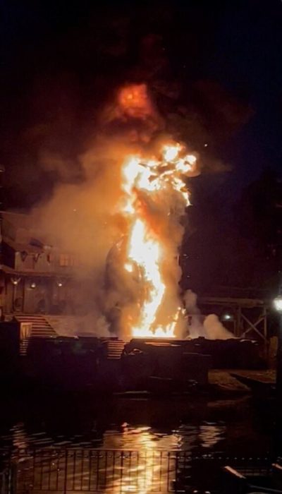 Videos from the incident showed the dragon fully engulfed in flames, leading to cast members being evacuated from Tom Sawyer Island, where the show was staged.