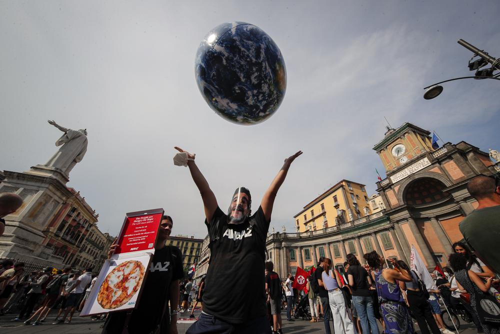 A file photo of people demonstrating on the sidelines of a G20 environment meeting, in Naples, Italy.