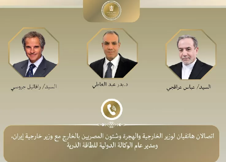 CAIRO – Minister of Foreign Affairs, Emigration, and Egyptian Expatriates Badr Abdelatty held separate phone calls with Iranian Foreign Minister Abbas Araghchi and Director General of the International Atomic Energy Agency (IAEA) Rafael Grossi.