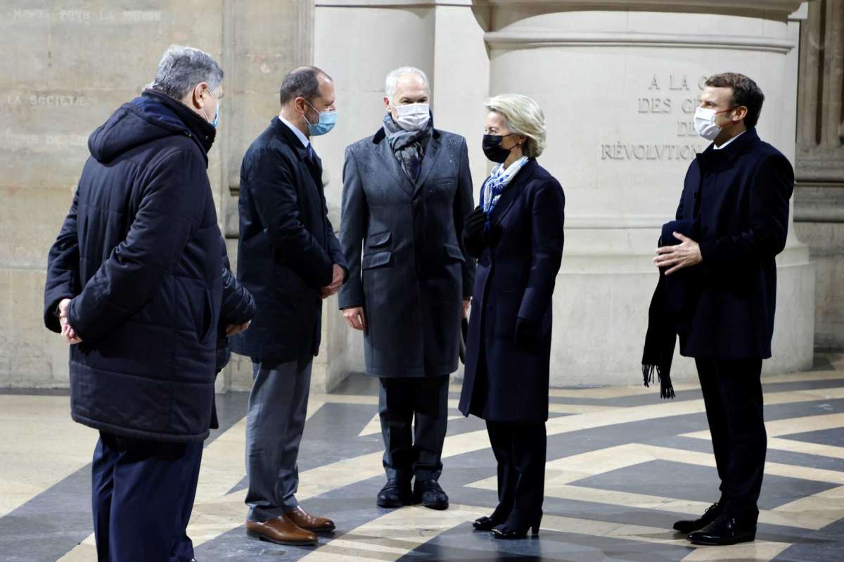 Both Macron and von der Leyen wore masks during the visit inside the domed building, amid a wave of coronavirus cases that somewhat overshadowed the beginning of the French tenure and caused trouble for the French leader ahead of the arrival in Paris of EU officials.