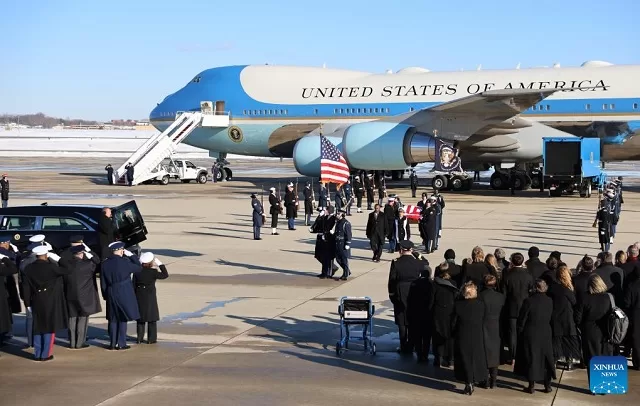 WASHINGTON -The body of former US President Jimmy Carter arrived Wednesday at the US Capitol in Washington to lie in state until the time of his official funeral Thursday.