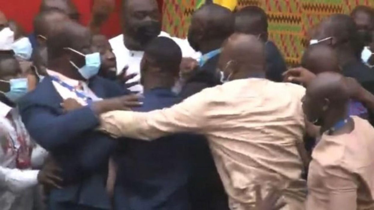 Members of parliament rushed to the front of the chamber after Deputy Speaker Joseph Osei-Owusu suggested the tax be debated and voted upon under a hastened ‘urgency’ procedure. Some threw punches and grappled while others restrained their colleagues.