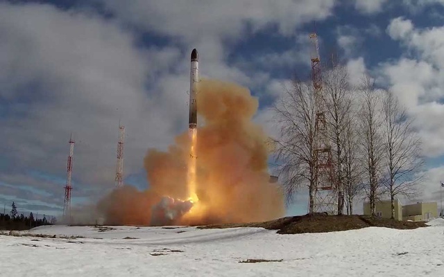 The Sarmat is capable of carrying 10 or more nuclear warheads and decoys, and of striking targets thousands of miles away in the United States or Europe.