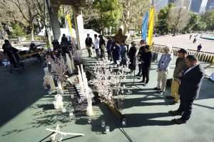 In Tokyo’s posh shopping district of Ginza, pedestrians stopped to observe the moment of silence as in previous anniversaries. But a memorial concert at the nearby Hibiya park, which has drawn many people in past years, was held online this year due to the pandemic and attracted only a small audience.