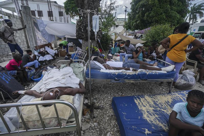 A hospital in the badly damaged town of Les Cayes was so crowded with patients after the earthquake that many had to lie in patios, corridors, verandas and hallways, but the approaching storm had officials scrambling to relocate them as best they could.