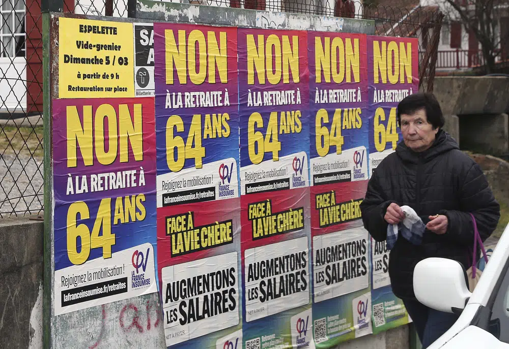 The government is bracing for the biggest disruptions Tuesday, when strikes are expected across multiple sectors and protests are planned in cities across France against the retirement bill. The reform, which would raise the official pension age from 62 to 64 and require 43 years of work to earn a full pension, is currently under debate in parliament.