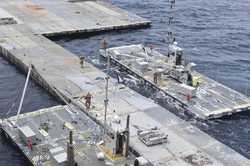 WASHINGTON — The US military finished installing a floating pier for the Gaza Strip on Thursday, with officials poised to begin ferrying badly needed humanitarian aid into the enclave besieged over seven months of intense fighting in the Israel-Hamas war.